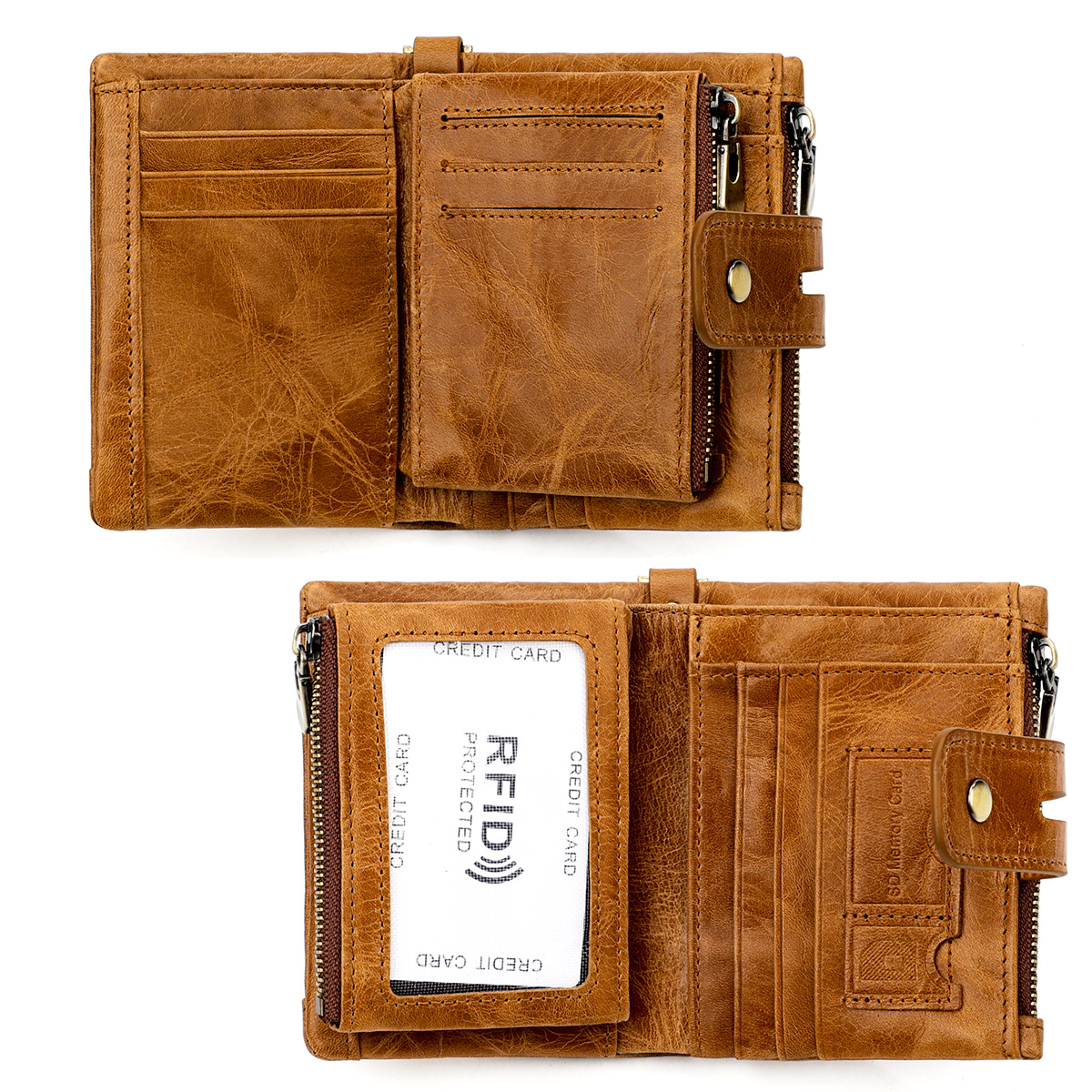 熱賣款男士真皮錢包RFID防盜刷瘋馬皮拉鍊錢夾女復古多功能短款錢包 手工真皮工匠職人經典款 BC022-3510