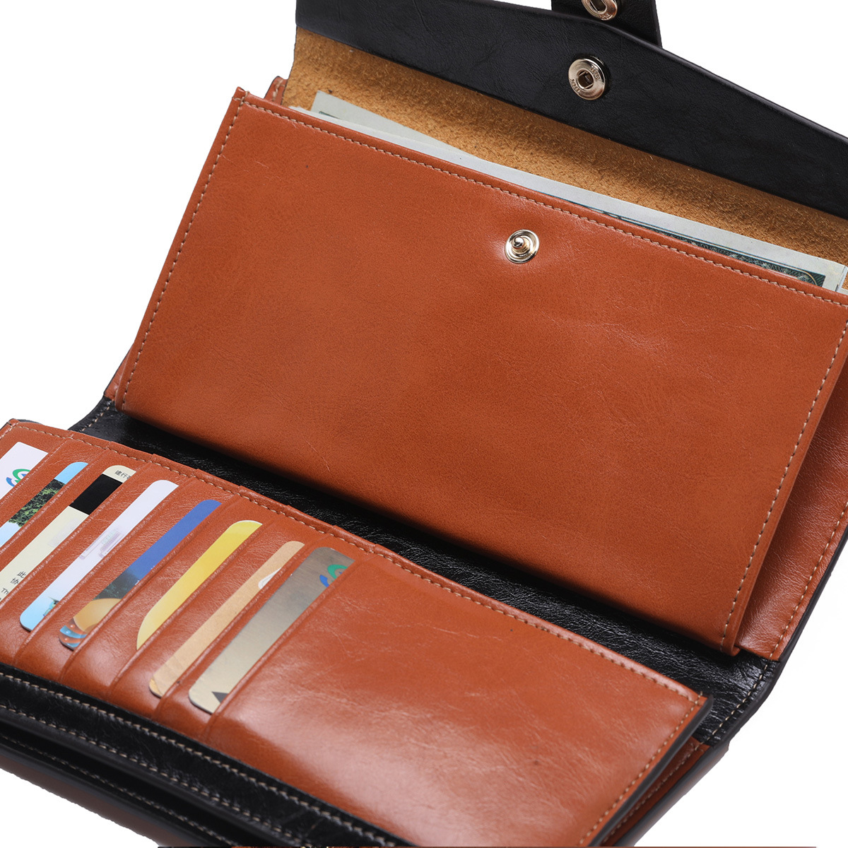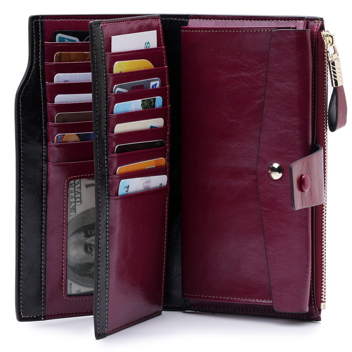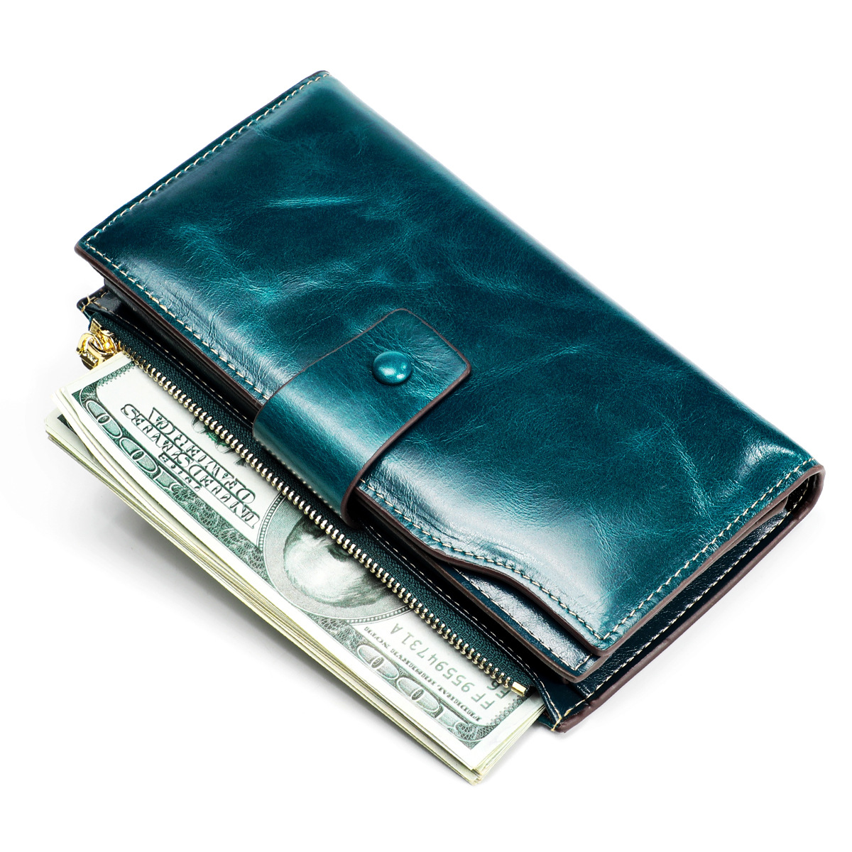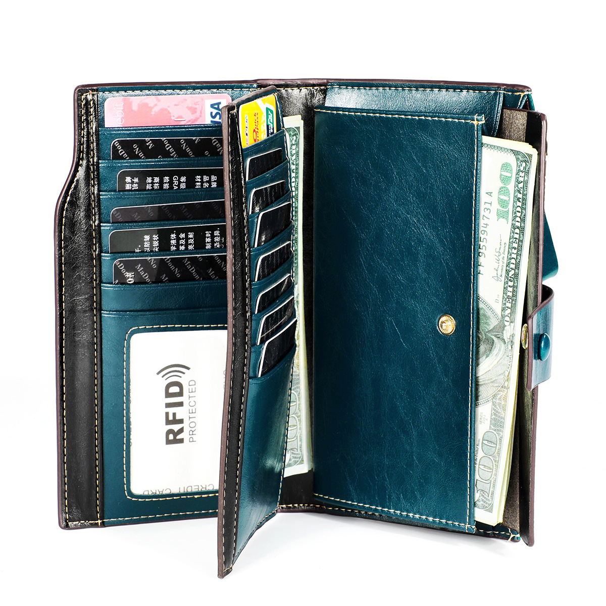 頭層真皮防RFID防盜刷女士錢包長款韓版油蠟皮錢包牛皮女式多卡位錢夾 手工真皮工匠職人經典款 BC027-8236