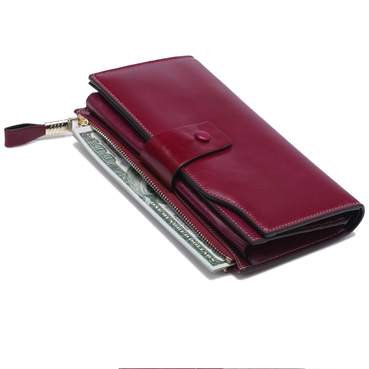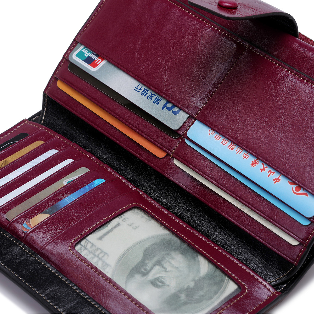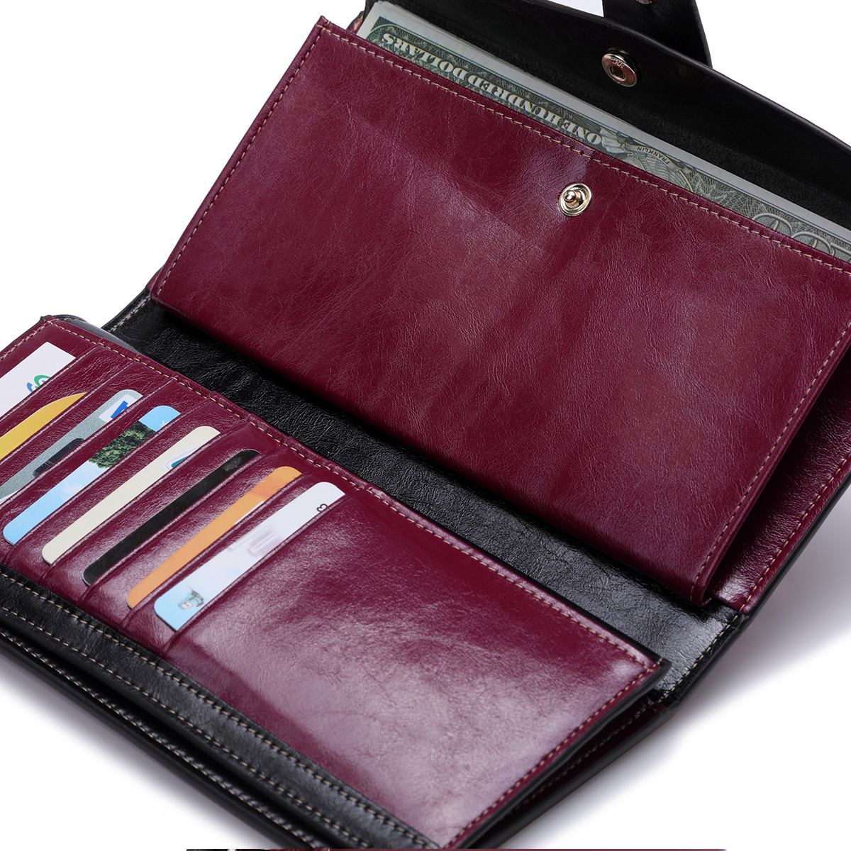 頭層真皮防RFID防盜刷女士錢包長款韓版油蠟皮錢包牛皮女式多卡位錢夾 手工真皮工匠職人經典款 BC027-8236