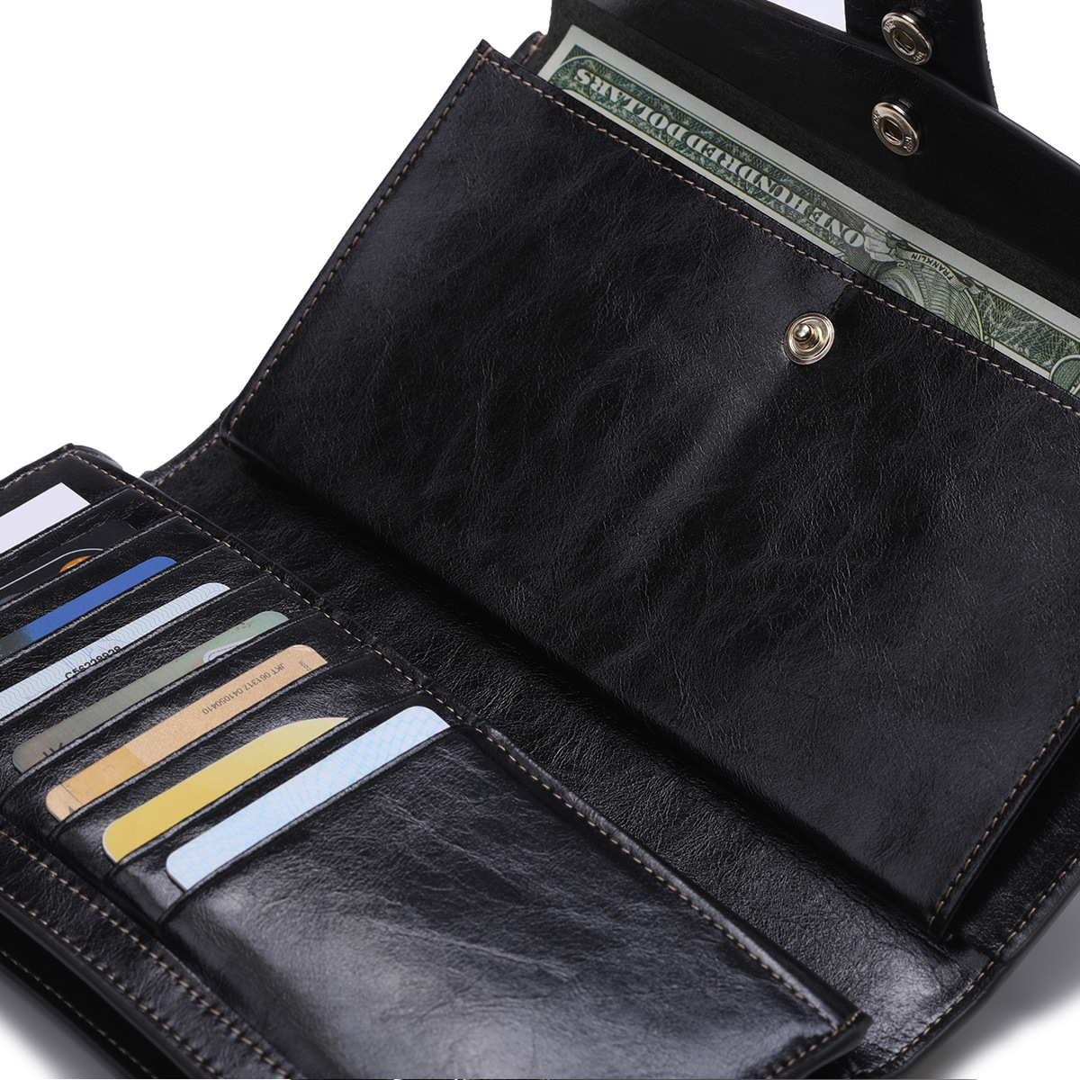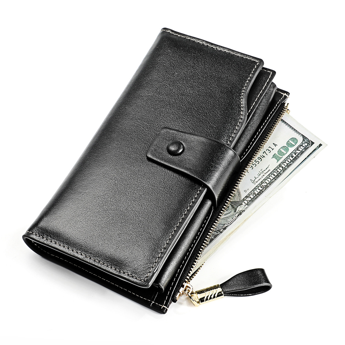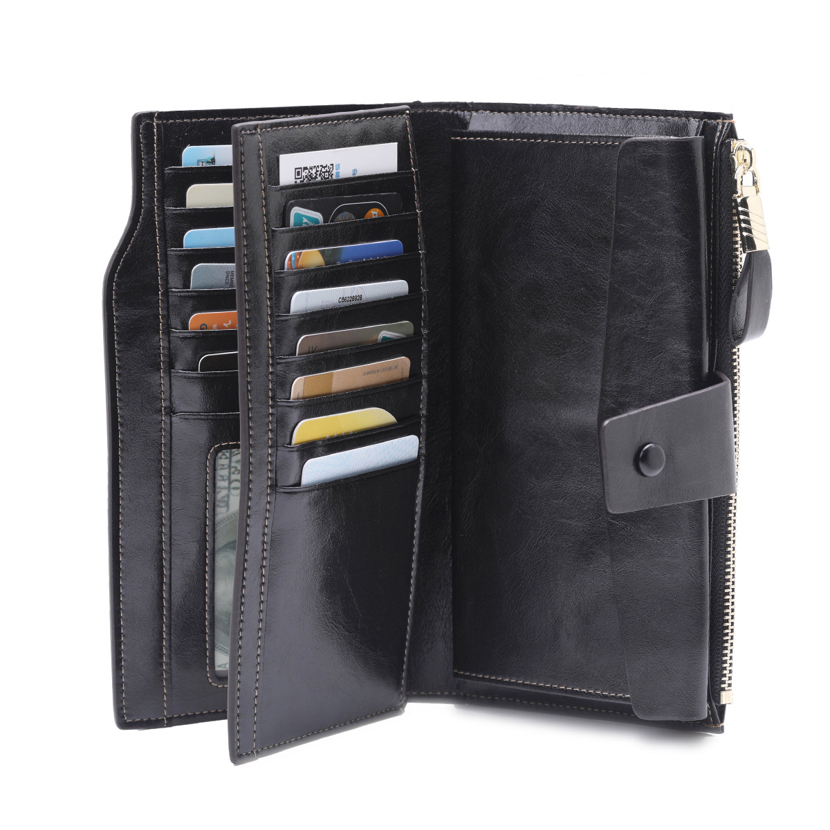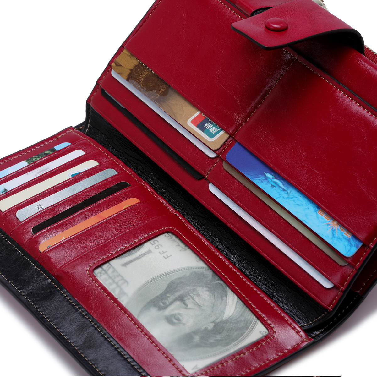 頭層真皮防RFID防盜刷女士錢包長款韓版油蠟皮錢包牛皮女式多卡位錢夾 手工真皮工匠職人經典款 BC027-8236