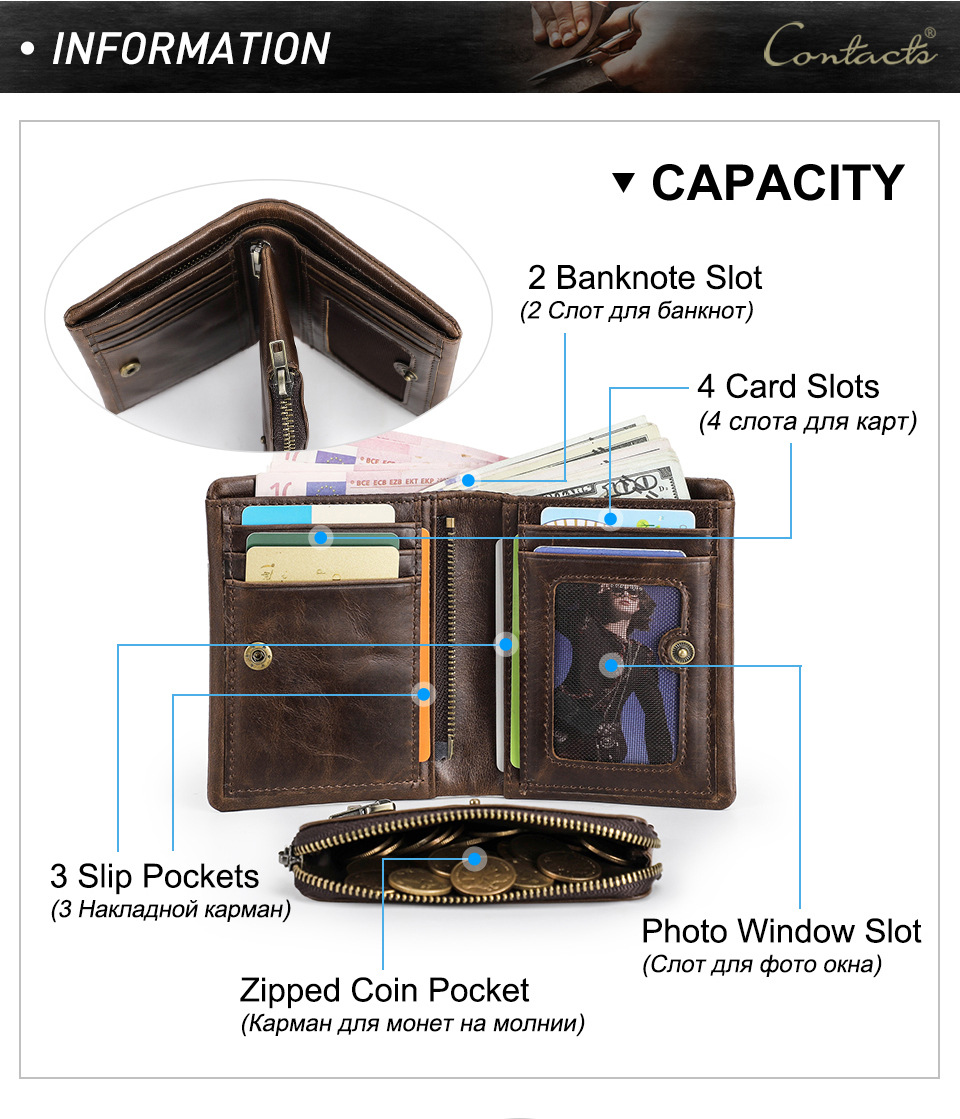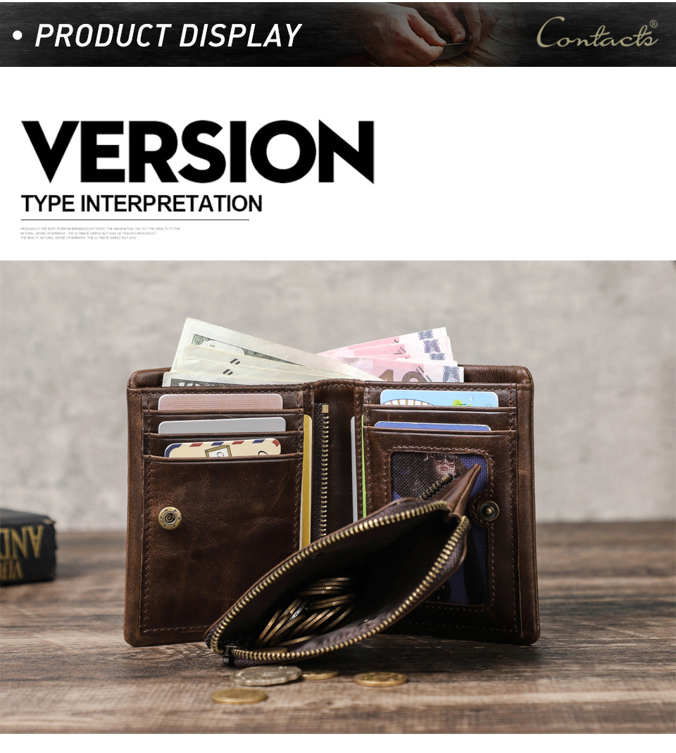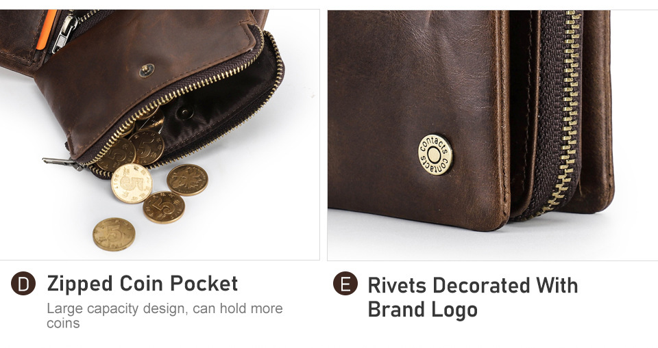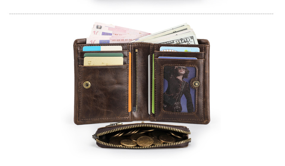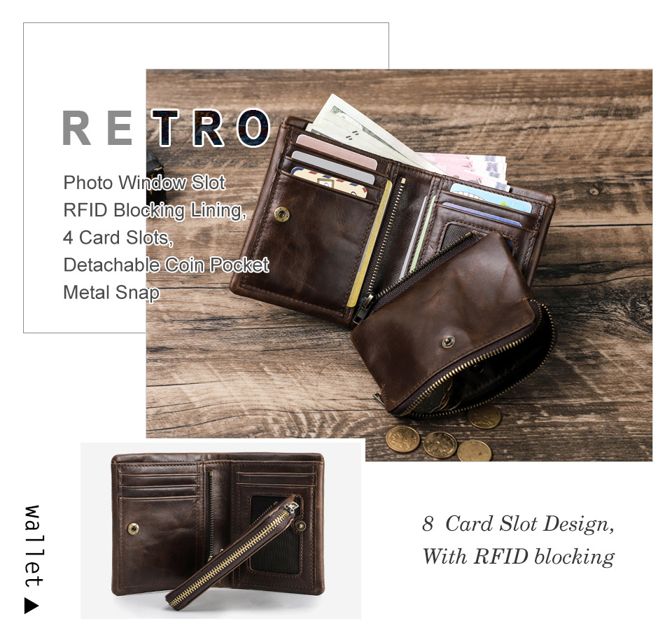 復古瘋馬牛皮RFID防盜刷三折式男女款錢包時尚可拆卸拉鍊零錢袋 義式復古全真皮 CT217-M1341