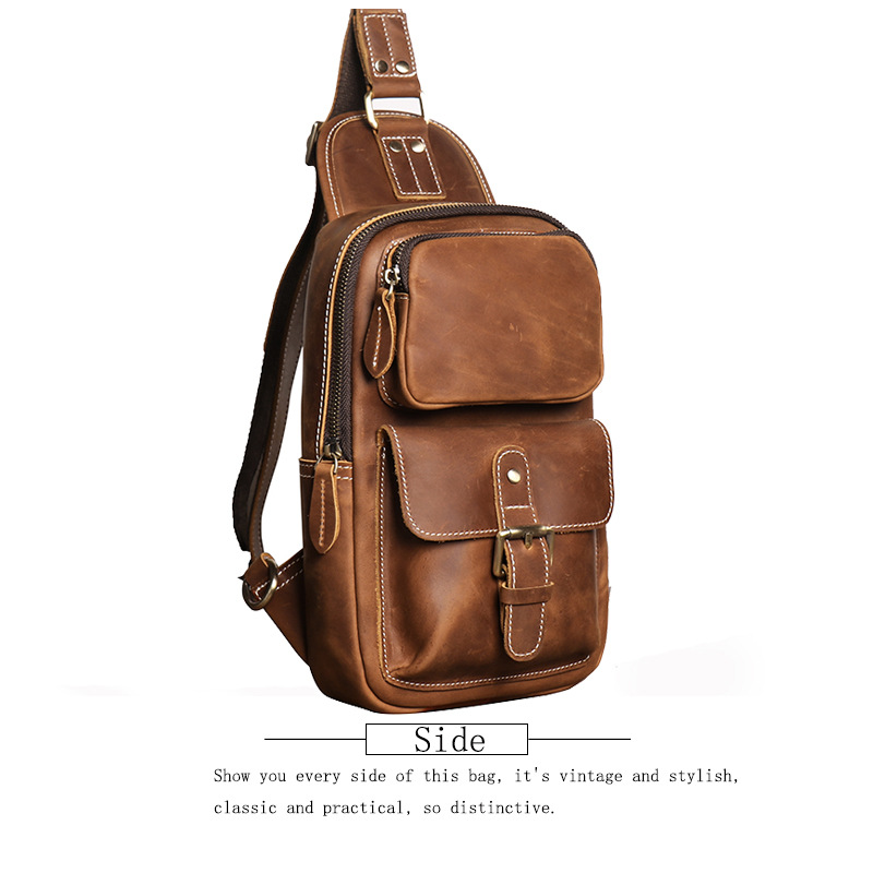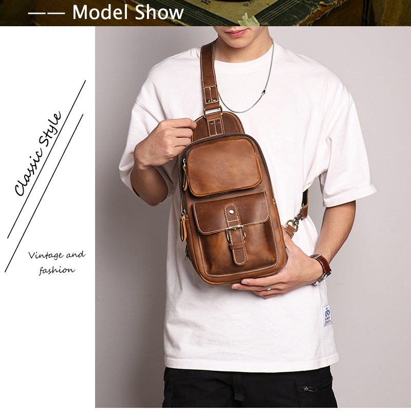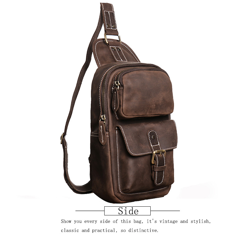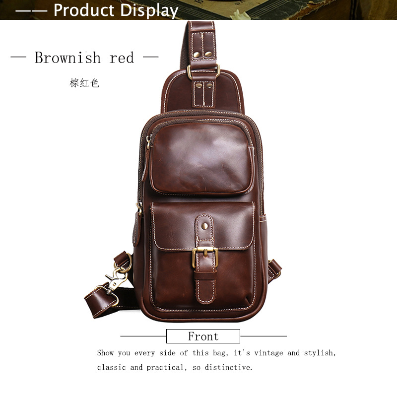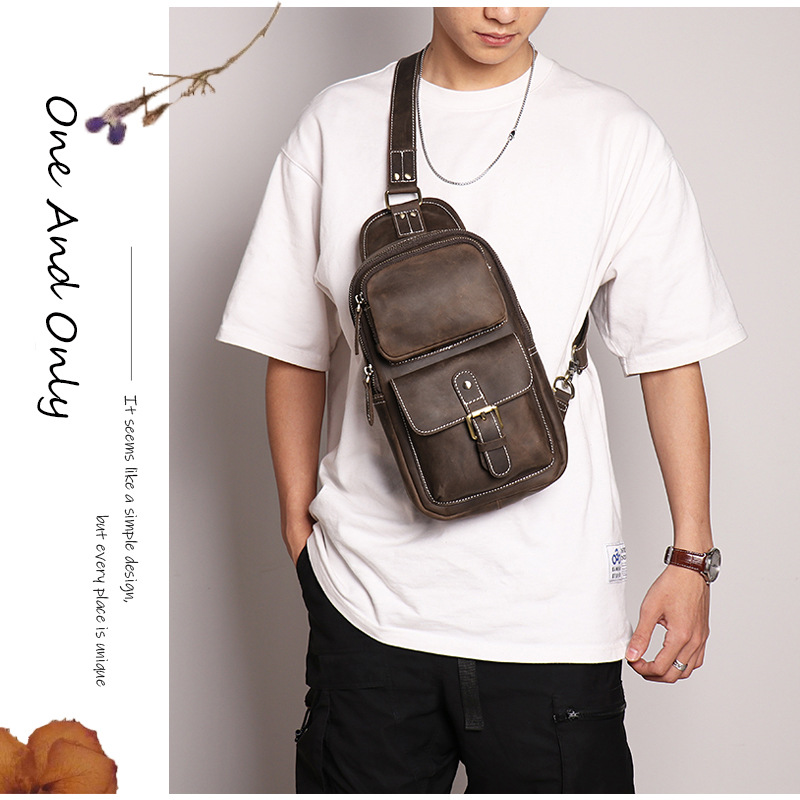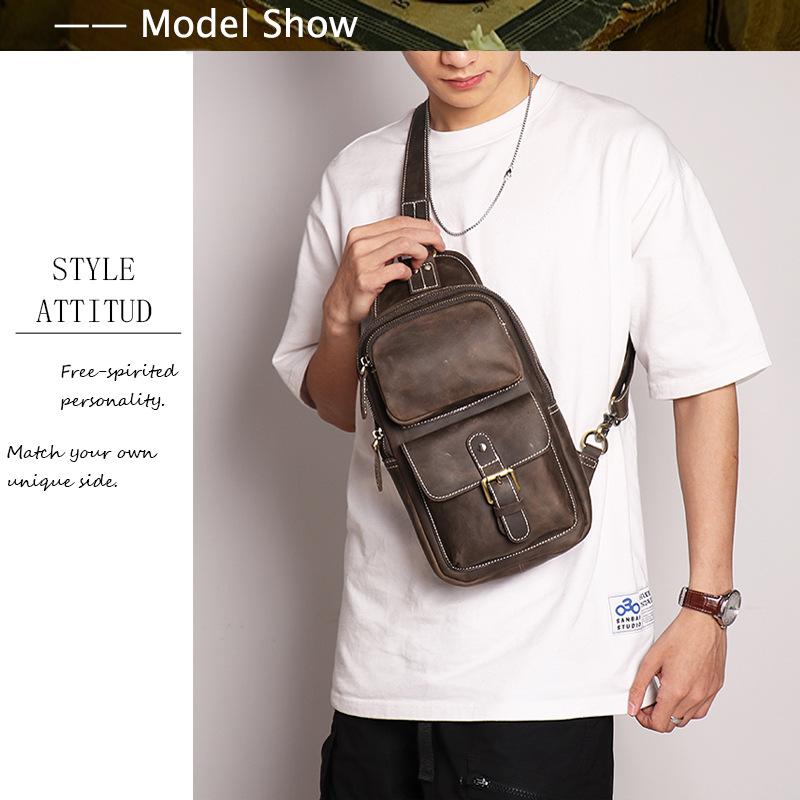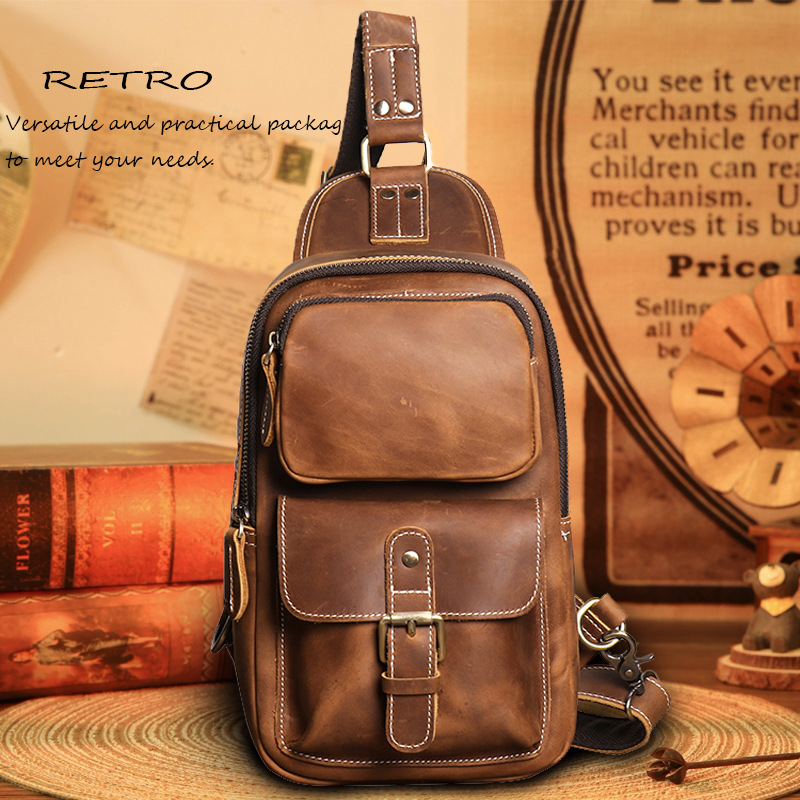 義式復古風瘋馬牛皮胸包戶外運動大容量斜背包真皮 原創日常風手工全真皮包 RJ057-30177