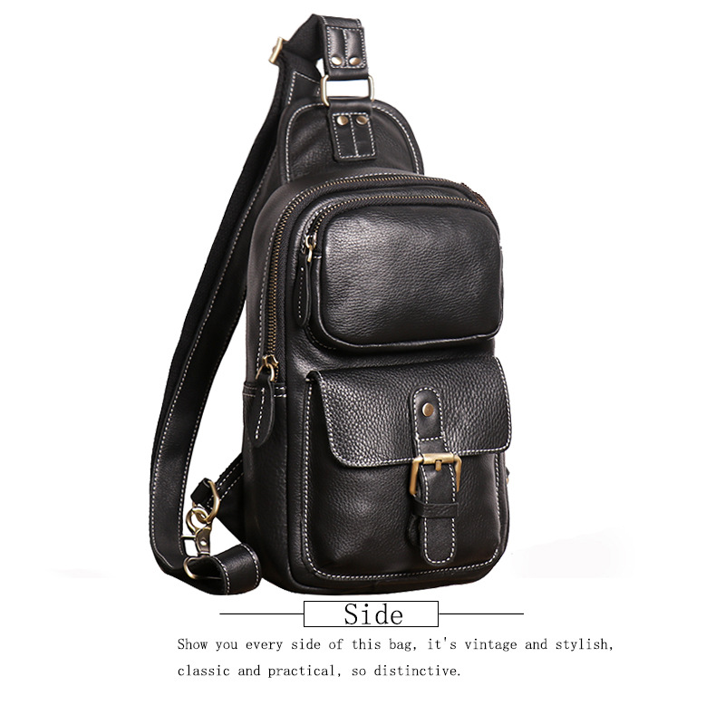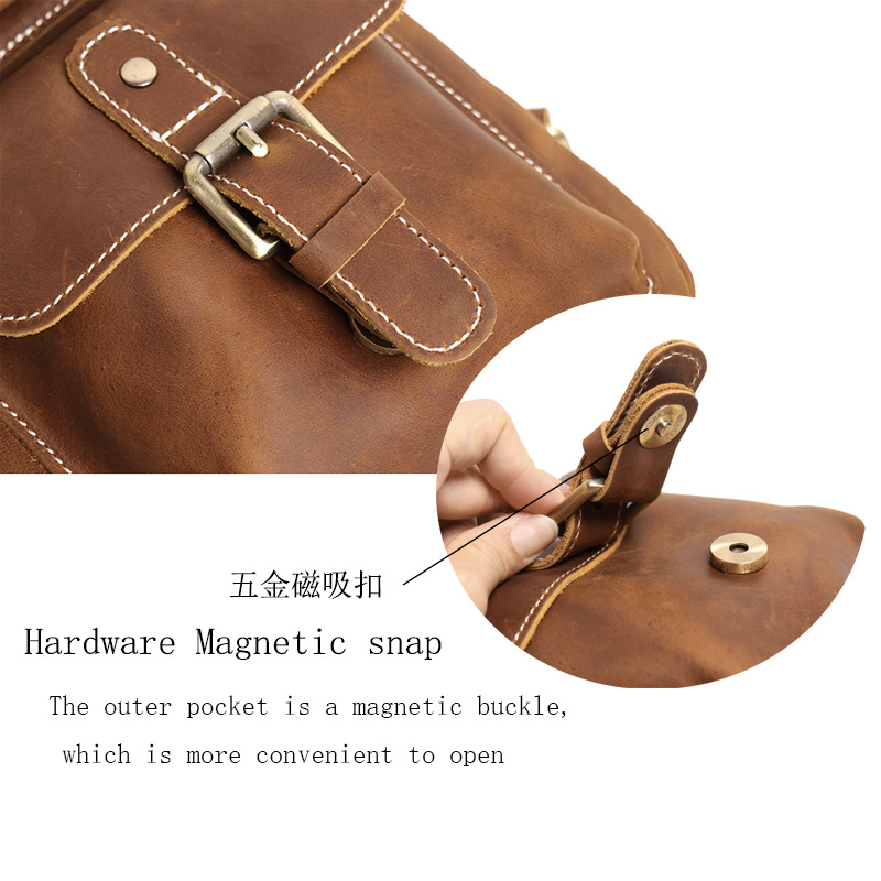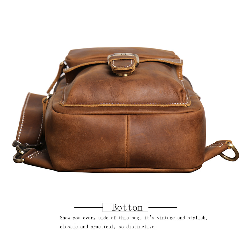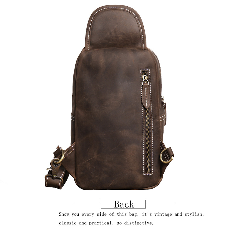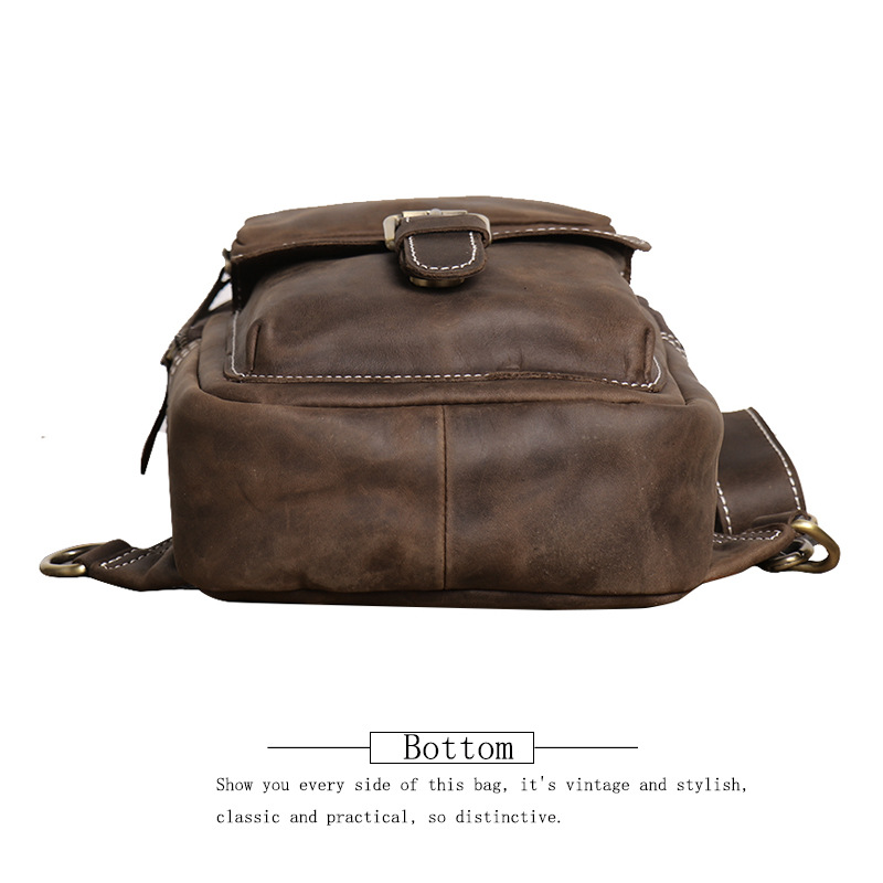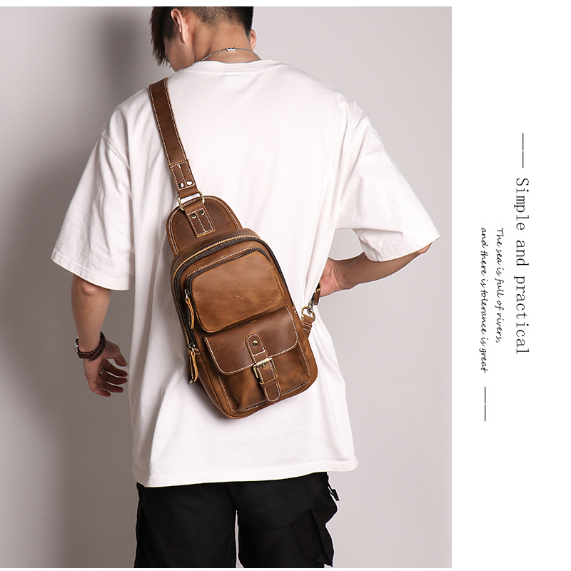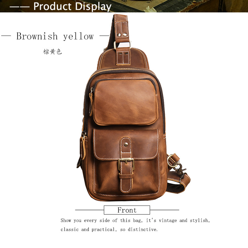 義式復古風瘋馬牛皮胸包戶外運動大容量斜背包真皮 原創日常風手工全真皮包 RJ057-30177