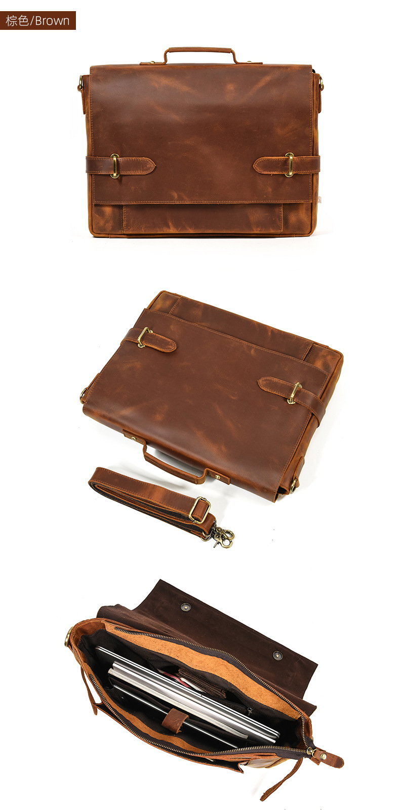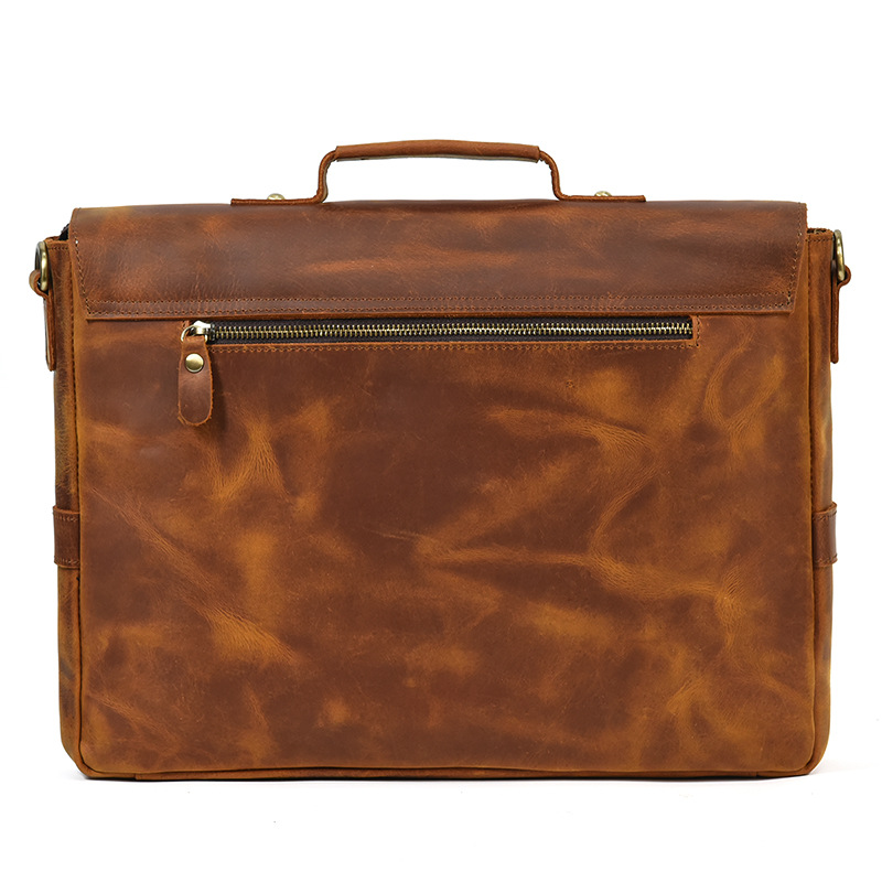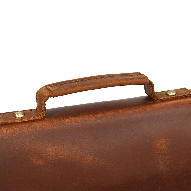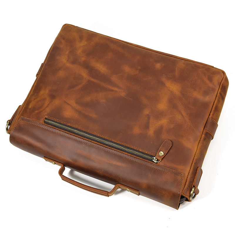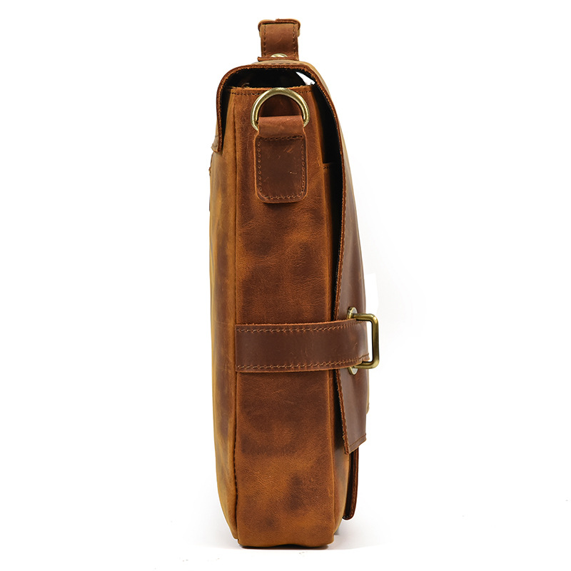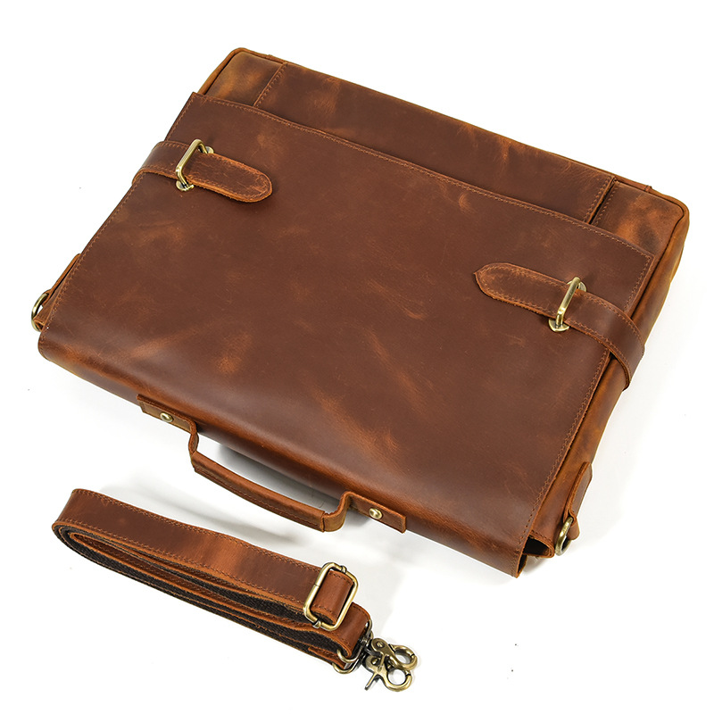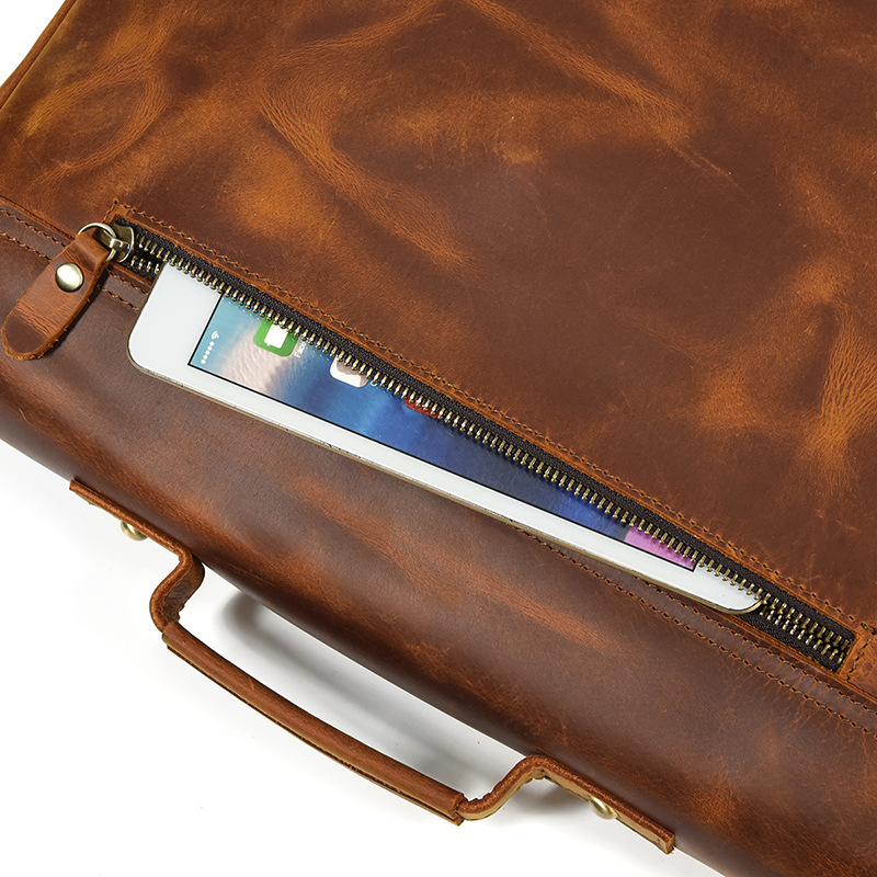 英倫復古手提包瘋馬真牛皮商務公事包頭層牛皮通勤側背斜背包 適用14吋以下筆電平板 原創職匠復古全真皮包 JP431-9090