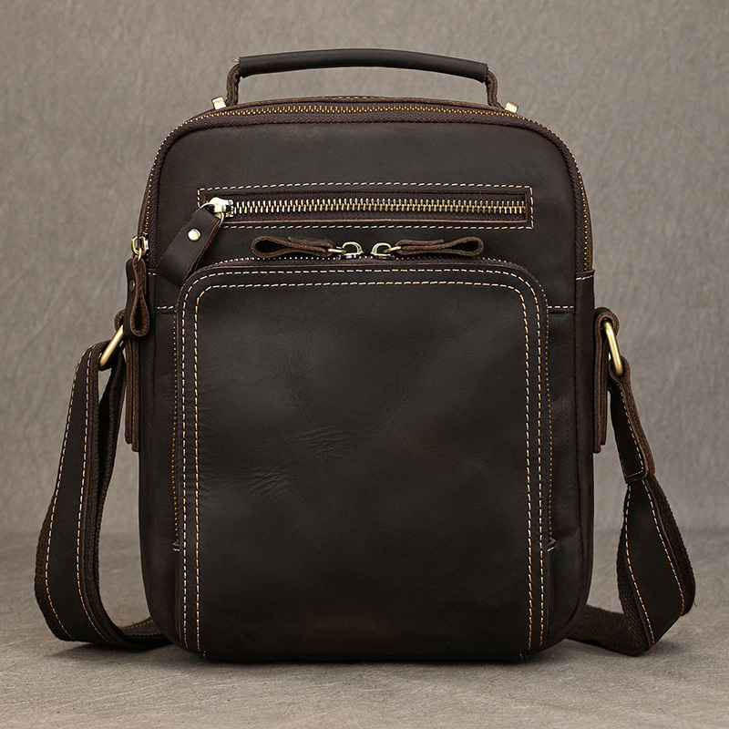 瘋馬真牛皮真皮斜背包大容量復古牛皮側背包9.7吋iPad包 原創職匠復古全真皮包 JP124-9501FM